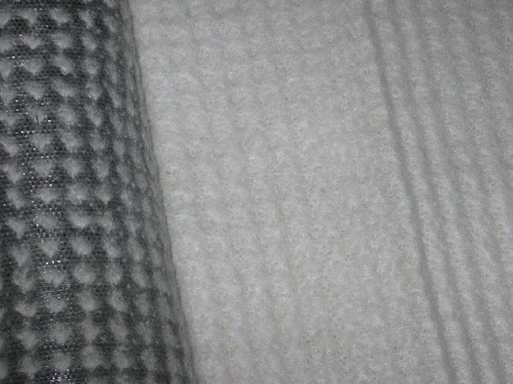 鈉基膨潤土防水毯是生態(tài)環(huán)保型防滲材料,是以鈉基膨潤土為主要原料,采用針刺法、針刺覆膜法或膠粘法加工制成的毯狀防水材料。鈉基膨潤土又稱之為鈉基蒙脫石,其防滲機理主要是利用夾封在材料中間的膨潤土吸水后,在上下兩層土工織物及回填保護層的壓力下,使其局限在一定的空間內(nèi)膨脹,從而形成緊密的膠凝體,以此達到止水防滲的作用。它遇水可以膨脹24倍以上并經(jīng)過針刺工藝形成非常穩(wěn)定的膠狀防水層,具有濾失量低和蠢性高的特性。