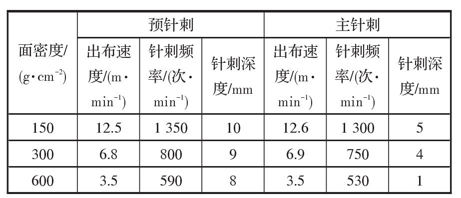 針刺頻率和針刺深度對布面強(qiáng)力有重要的影響。對于高強(qiáng)滌綸紡黏針刺土工布來講,布的面密度越大,生產(chǎn)速度越慢,針刺頻率越低;面密度偏小時,針刺工藝正好相反。針刺深度調(diào)整原則如下:①單絲強(qiáng)力較高時,針刺深度深一些;②面密度較大時,針刺深度淺一些;③預(yù)針刺深度比主針刺深一些。